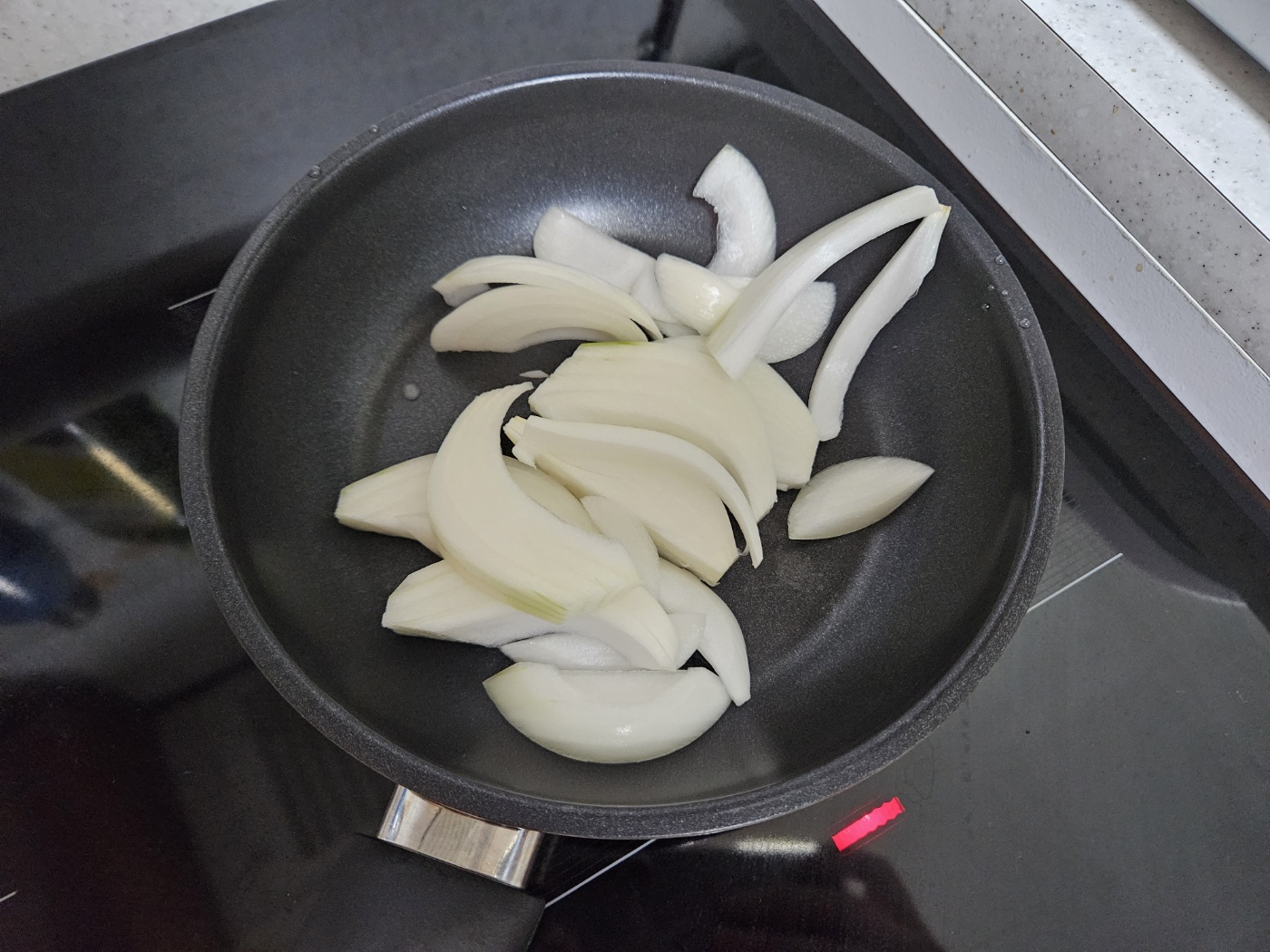 양파는 채 썰어 주시고, 팽이버섯은 물로 살짝 헹궈서 찢어주세요.